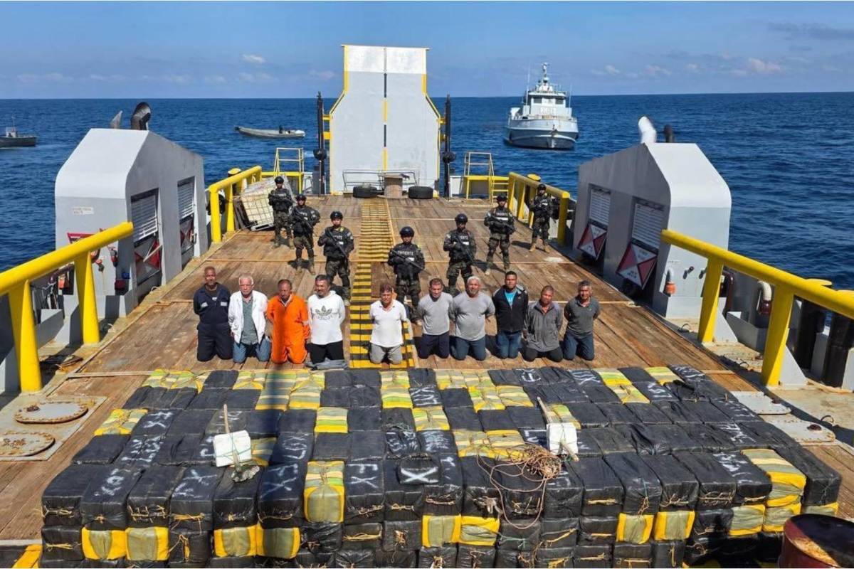 En el buque fueron detenidas 10 personas señaladas como presuntos narcotraficantes: cuatro colombianos, tres nicaragüenses, dos panameños y un ecuatoriano.