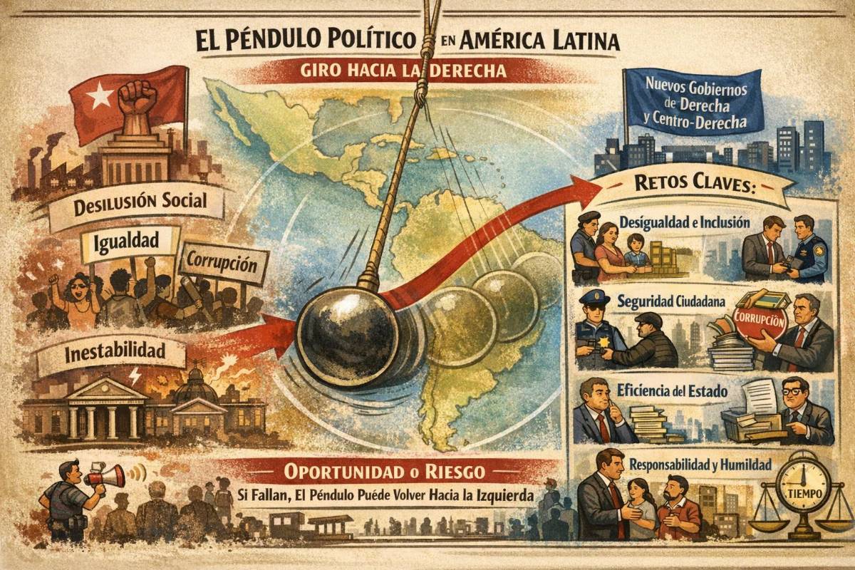 El comportamiento político de América —particularmente de América Latina— ha estado históricamente marcado por un fenómeno pendular. Las sociedades oscilan entre proyectos de izquierda y de derecha en función de sus expectativas, frustraciones y, sobre todo, de los resultados concretos de quienes gobiernan. Hoy, ese péndulo parece inclinarse nuevamente hacia la centroderecha y la derecha, pero este giro no está exento de riesgos ni garantiza estabilidad duradera.