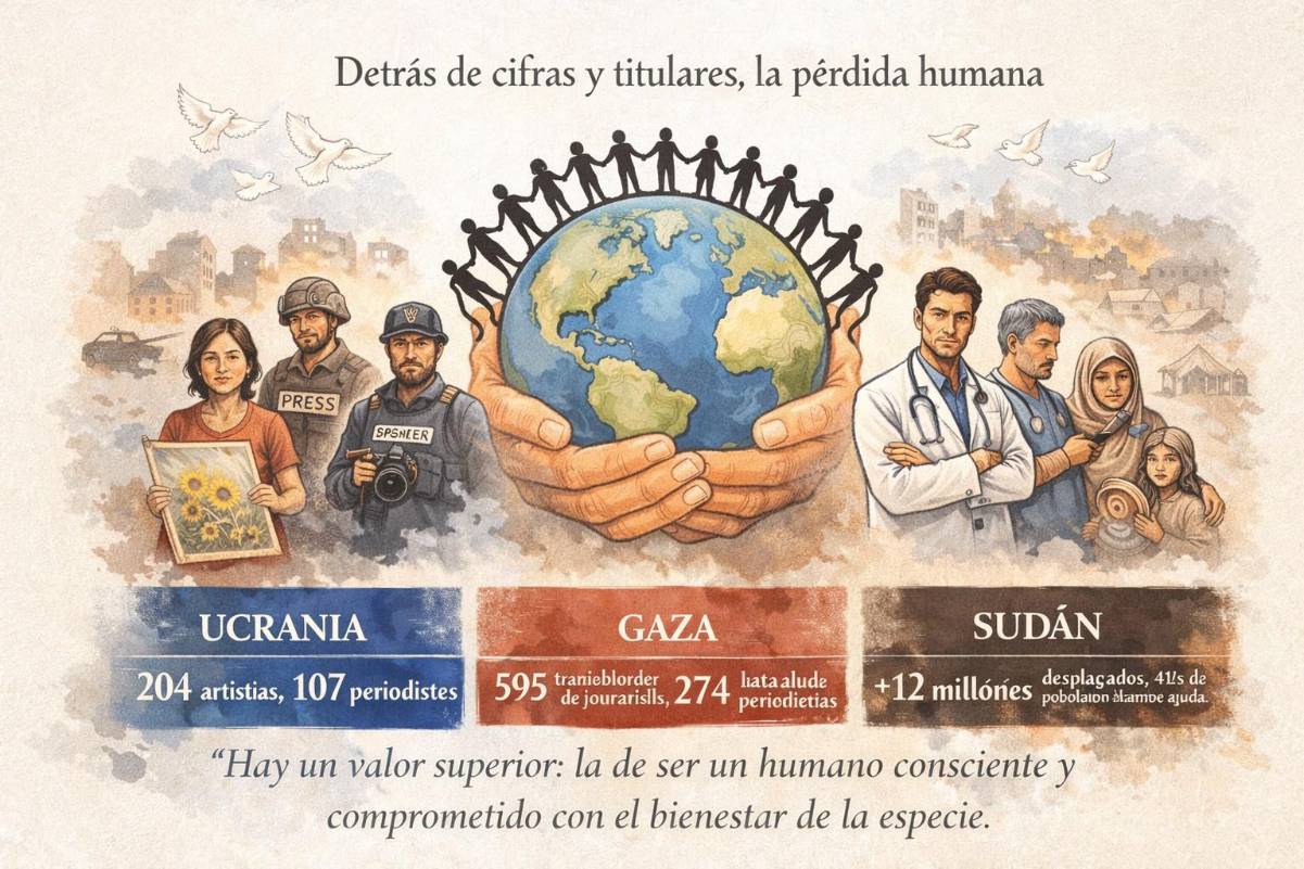 Muchas personas no atienden estos temas de pérdidas humanas en conflictos como los mocionados, pero cuando el noticiero informa sobre muertos y heridos en alguna parte del mundo, siempre es importante reflexionar sobre la calidad de seres humanos que hemos perdido en ese titular de noticias. Si: cuenticos, educadores, académicos, médicos, escritores, periodista, etc., pero no solo por sus títulos y sus aportes en diferentes áreas del saber. Hay un valor superior, la de ser un humano consciente y comprometido con el bienestar de la especie.