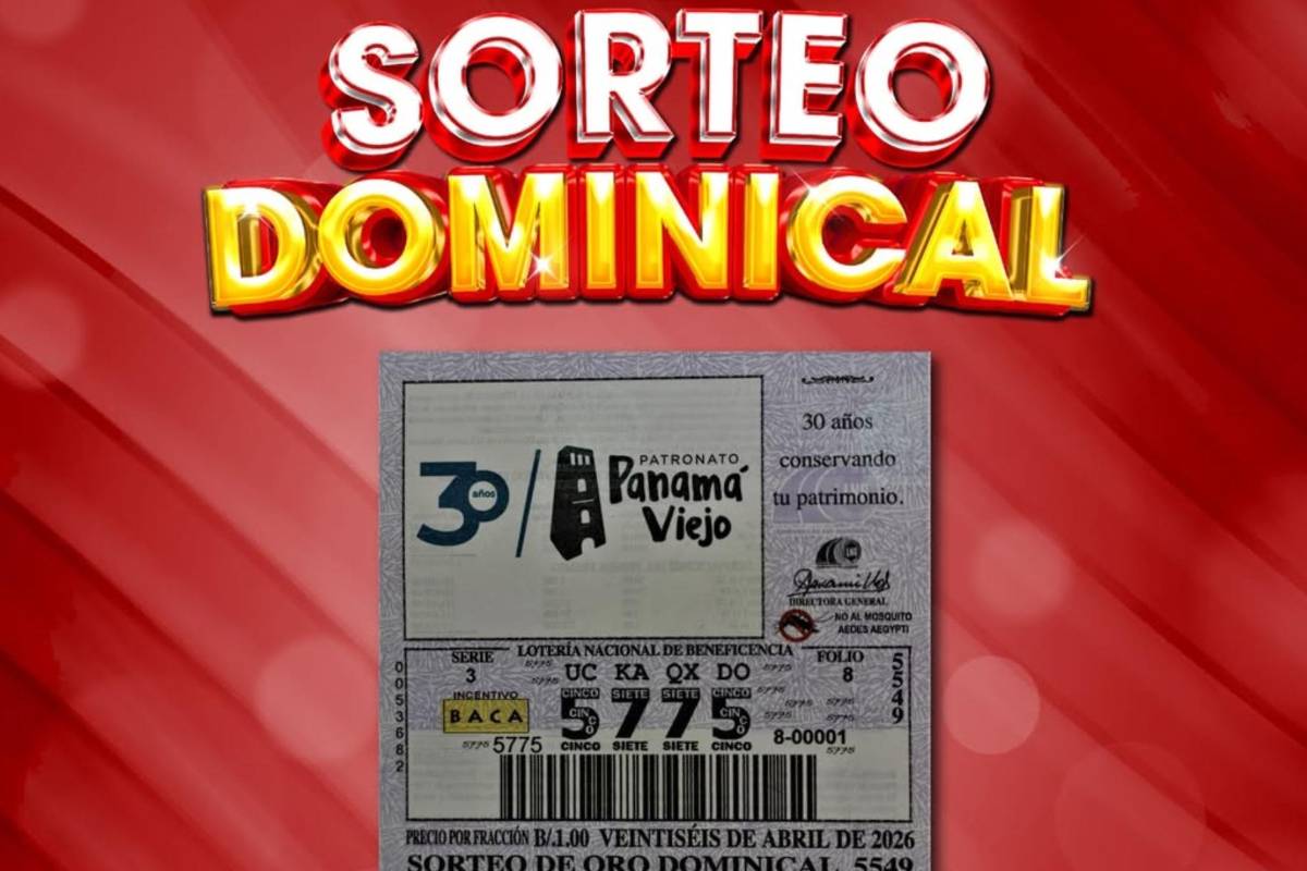La Lotería Nacional de Panamá anunció que este domingo 26 de abril llevará a cabo el sorteo N.° 5549. Según informó la entidad, para este sorteo los billetes y chances, destacan en su impresión “30 años -Patronato de Panamá Viejo”.