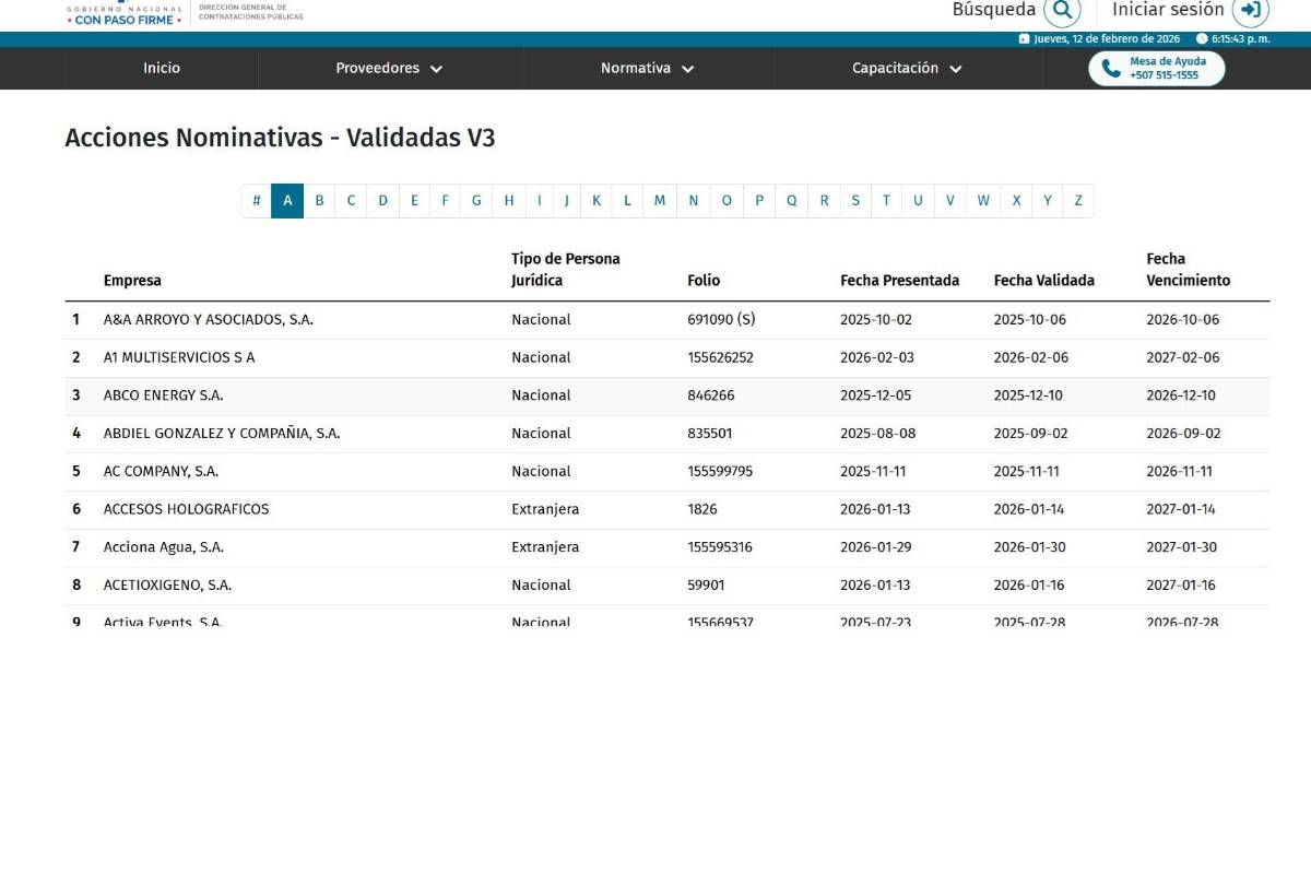 No obstante, en Panamá el Registro Público tampoco da esa posibilidad, toda vez que solo muestra dignatarios o representante legal.