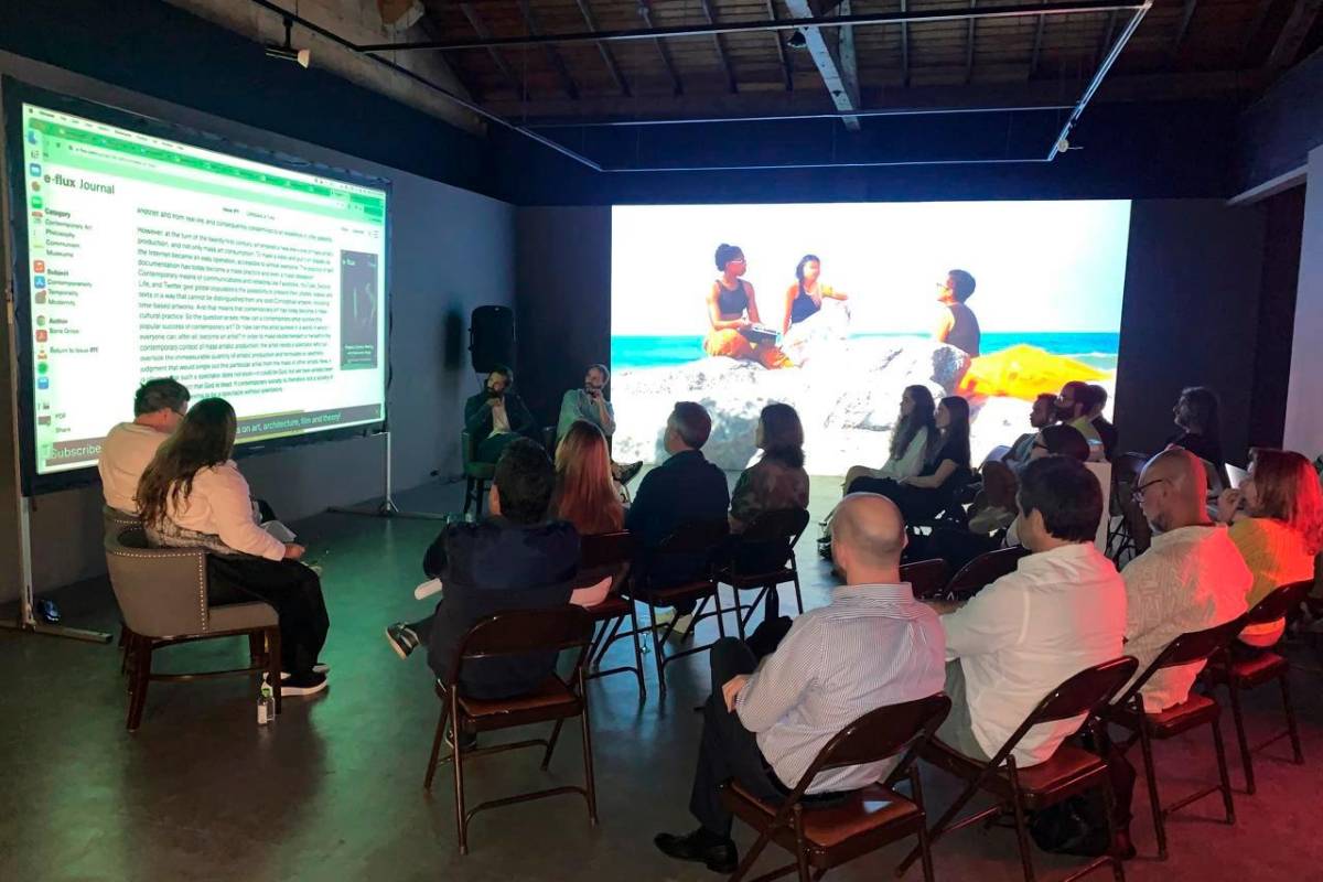 El panel – moderado por el curador jefe del MAC Juan Canela - estuvo integrado por el director internacional de la organización interdisciplinaria de arte contemporáneo Kadist, Joseph del Pesco, la coleccionista de arte Benedicta Badía, y el arquitecto y curador de arte Johann Wolfschoon.