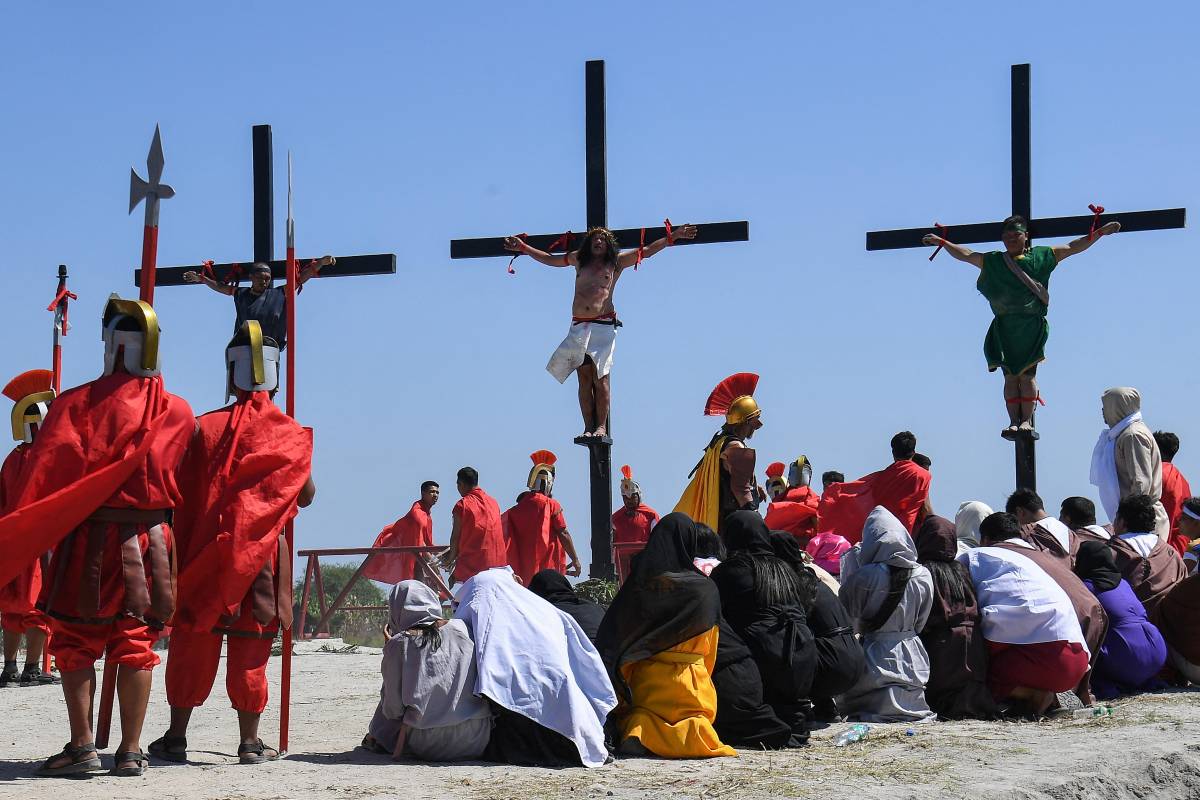 Cientos de filipinos y turistas acudieron en masa este Viernes Santo a un campo al norte de Manila para presenciar bajo un sol abrasador una de las manifestaciones de fervor religioso más sangrientas del país: la representación de la crucifixión de Cristo.