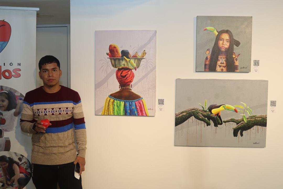 Dos manos se miran. Un dedo sostiene un ave. Ambas están retratadas como si fueran ramas. Cuando se miran los cuadros de Jonathan Rodríguez, de 22 años, la imaginación del espectador sobrevuela. El tucán es su principal protagonista.